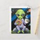 An alien sits on a rock wearing PJs with coffee and bagel in hand ready to start the morning cute scifi AI generated art