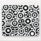 An attractive and original abstract design made up of circles and round spots, some of the circles have centre spots, some circles within circles. All the main circles are connected with a network of lines, like cords, strings or wires. Creating a composition that might be the inner workings of some sort of mechanism, some kind of diagram, or and electrical circuit.