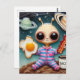 A funny Alien dressed in PJs with a coffee and bacon and egg for breakfast adorable AI generated art