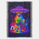 The party’s not over—it’s just getting started in this intergalactic disco scene! A UFO hovers above with a glittering disco ball dangling beneath it, casting vibrant neon lights over a dance floor packed with groovy aliens dressed in retro disco gear. This wild, colourful design is a mashup of vintage style, sci-fi fun, and dance-floor joy. Whether you're into space-age humour, love aliens, or just want something fantastically funky for your living room, this blanket is pure fun. It makes a stellar gift for party lovers, cosmic enthusiasts, and anyone who wants to dance with the stars—literally.