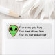 Artwork of a green Alien's face, displayed on Return Address Labels. -- Click on the boxes that are shown 'above right', delete the text and type in your own text or words. Then click on a blank area on this page to see the changes appear in the image shown above.