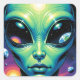 Alien Face with Planets Reflections in Eyes Square Sticker
