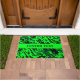 Camouflage doormat in bright green with editable text field, customise with your address number, company name, etc.