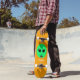 Show your moves on this Alien Head Green Orange Personalised Kids skateboard. It is designed with a bright green alien head sticking out his tongue on the centre of customisable bright orange background. Name is in bold white lettering. Makes a great gift idea for science fiction, outer space and UFO lovers. Click personalise template option and enter name.