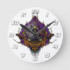 Alien Head - purple Round Clock