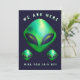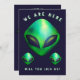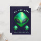 Cool fun 40th birthday party invitation with a printed image of 3/three green alien heads on a very dark blue background,