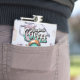 The flask itself is fine. It’s a cheap flask, obviously bought in bulk, however am prepared to overlook that. Given that it is a personalized item, I would have liked to have seen gift boxing instead of the generic packaging. Terrible printing, and/or quality. It’s a cheap, tacky vinyl. It is not cut straight and is also applied in a way that it is overhanging the bottom, causing the glue to catch on items and it will eventually roll and tear, damaging the wrap.