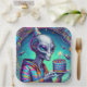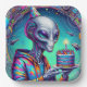 Funny extraterrestrial alien being with birthday cake and balloons funny birthday party plates.