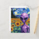 Alien in a Faux Van Gogh Sunflower Field Postcard