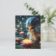 Alien in a Glowing Summer Pond With Pink Flowers Postcard