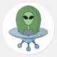 Alien in his little spaceship classic round sticker