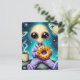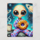 Alien in PJs with a Coffee and Bagel Postcard