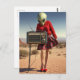 Alien in Red Plaid Skirt With Radio in the Desert Postcard