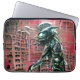 Giant green metallic alien creature invading a metropolitan city. Wombo Dream AI and artist collaboration.