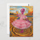 An alien lady dressed in pink and pearls with a glass of orange juice AI generated