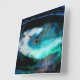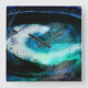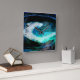 Blues and greens swirl on this abstract that looks like the landscape of an alien land and sky.