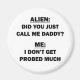For the sarcasm lover in all of us. Check out this witty “Alien: Did You Just Call Me Daddy? Me: I Don’t Get Probed Much” design on apparel and gifts.