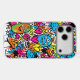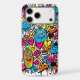 Strike back with a bold new look. This premium impact-resistant case for the iPhone 17 Pro Max features a unique, high-energy graffiti pattern starring quirky, multi-eyed alien monsters, hearts, stars, and crowns. The vivid blue, orange, and pink colour palette creates a futuristic urban art cover.