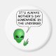 A cartoon alien head saying that's always mother's day somewhere in the universe.