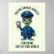 Meet the galaxy’s toughest law enforcer. This poster features a futuristic alien policeman in uniform, confidently holding his badge as he delivers the ultimate warning “You’re Under Arrest For Being Out Of This World”. This print combines humour and sci-fi flair for anyone who loves alien-themed art and a good laugh. Perfect for space enthusiasts, pop culture fans, or anyone with a quirky sense of humour. Add a touch of extraterrestrial charm to your space today.
