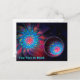 A very colourful, swirling, fractal image appears twice. Once superimposed on a starry, outer space background; a second time on a small sphere surrounded by a glowing aura. Perhaps a probe launched from a mother ship; or a cosmic egg. Add your own text.