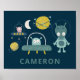 Delight your little space explorer with this Personalized Alien and Planet Kids Poster, featuring a fun design of friendly aliens, rockets, planets, and moons against a deep navy background. Available as a downloadable or printed option, this poster adds a whimsical and adventurous touch to any child's room or play area. Customize it with your child's name to make it truly special. Perfect for space-themed nurseries or kids who love all things outer space, this poster sparks imagination and brings a playful vibe to their space!