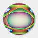 This magnet features a multicoloured pattern of bright psychedelic colours surrounding a central egg shaped structure. It resembles a fantasy of an alien spaceship ready to abduct an earthling.