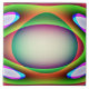 This awesome tile features .a multicoloured pattern of bright psychedelic colours surrounding a central egg shaped structure. It resembles a fantasy of an alien spaceship ready to abduct an earthling.