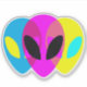 This CMYK Alien head sticker will look interstellar on your device.