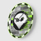 ATTENTION EARTHLINGS! Cool retro TV testcard inspired design featuring a stylised alien face and extra-terrestrial interference in shades of black, white, grey and green. A customisable design for you to personalise with your own text, images and ideas. An original digital art image created by Jess Perry.