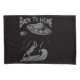 alien ufo surfing illustration with back to home lettering black and white