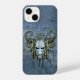 This horned alien war mask is a menacing sight to behold, with its skull-like appearance and sharp metal spikes protruding from its chin and gold spiral horns. Set against a grey grunge background, it's a fearsome symbol of power and strength, fit for only the most ruthless and skilled warriors.