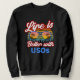 This jumper is perfect. It's a little large which is great as I love a loose comfy jumper. The quality is great. The colours and quality of the print look AMAZING. unfortunately the image came out a little smaller & higher than I expected