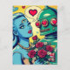 A blue alien woman with a third eye and a robot in love retro comic book style AI generated art