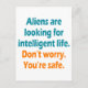 Great gift for UFO lovers! Reads "Aliens are looking for intelligent life. Don't worry. You're safe." Other colours available.