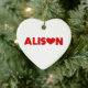 The name Alison with the letter o replaced with a red love heart. The colours can be changed.