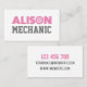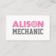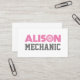 The name Alison with the letter O as a wheel. The word mechanic can be changed to any vehicle related job.
