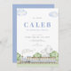 This editable modern train birthday party invitation sets the tone for your chugga chugga train theme birthday celebration. The HORACE Collection features a white background with a watercolor blue choo choo train chugging along down the train tracks with steam coming out of the engine in front of a snow capped mountain and green trees and a pair of fluffy clouds in the sky. A pairing of classic serif fonts and a script font in blue and grey with all editable text completes this train theme kids birthday party invitation for a train birthday featuring everyone's favourite locomotive 🚂.