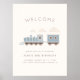 All aboard! Welcome your friends and loved ones to your little train conductors birthday party with this fun blue choo choo train welcome sign poster.