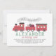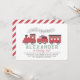 This cute "all aboard" Christmas holiday 1st/first birthday invitation features a white background with steam train in red. The reverse side features a white background with red diagonal stripes. Personalise it for your needs. You can find matching products at my store.