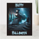 The spectral conductor asks for your ticket as you board the ghost train into the haunted dark forest. Add your own personalised text.
