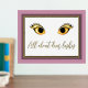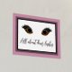 Fashion foil print featuring a glamourous set of eye lashes set on a white background, with gold foil frame and dusty rose matte style frame around the outside. Gold foil text reads All about dem lashes, and can be personalised to read what you want.