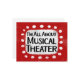 "I'm All About Musical Theatre" is a cute text design in red with black text, along with a white accent shape and white textured whimsical dots surrounding it.