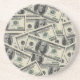 The design on this sturdy sandstone coaster features a pattern with lots of $100 dollar bills.