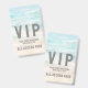 This VIP badge features a soft and stylish watercolor beach scene in the background, with calming teal blue ocean tones and warm tan sandy hues for a relaxed coastal feel. The artwork creates a breezy, scenic backdrop that’s perfect for seaside events.