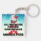The Niche and That store of the "All Because Father Christmas Loves Mince Pies" keychain design is the perfect gift for all those that believe in Father Christmas and love to eat mince pies during the festive season. Father Christmas shimmies down the chimney for yet another mince pie that the children have left out for him.