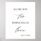 Make a beautiful statement on your wedding day with this romantic “All Because Two People Fell in Love” personalized wedding sign. Sized at 24x36, it’s perfect for welcoming guests, decorating your ceremony or reception entrance, or creating a stunning photo backdrop.
