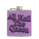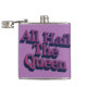 Bold 3D quote 'All Hail the Queen' in purple against purple.
