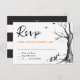 This simple Gothic design features a sketched tree, bats and a spiderweb with a pop of orange color. The back of the invitation is a black and white stripe. Coordinating wedding items to match (sold separately). Matching items can be found in our 'All Hallows Eve' collection.