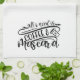 Our custom kitchen towel adorned with with the words "All I Need is Coffee & Mascara" in black and white. View our full line of products in our Zazzle store.